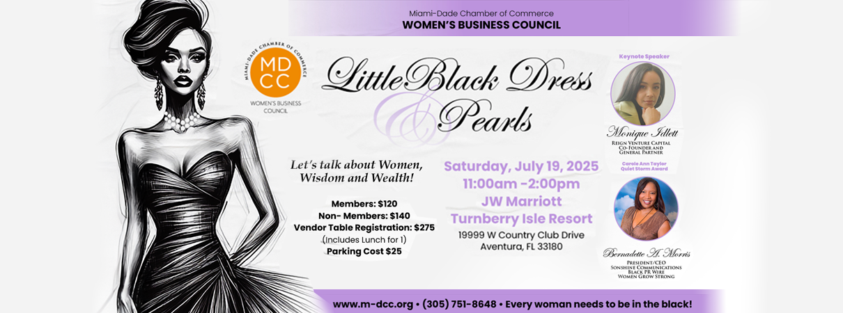 Sistas . . . . mark your calendar, save the date and be sure to join us on Saturday, July 19 at 110 a.m. for the Miami-Dade Chamber of Commerce’s Little Black Dress & Pearls Luncheon. It takes place at the Marriott Turnberry Resort in Aventura, Florida. It is THE Sistas event that you DO NOT want to miss.